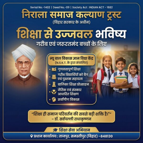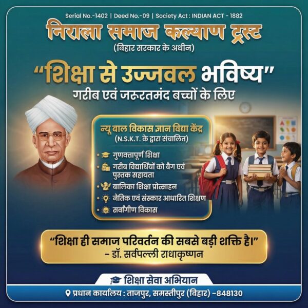 рдирд┐рд░рд╛рд▓рд╛ рд╕рдорд╛рдЬ рдХрд▓реНрдпрд╛рдг рдЯреНрд░рд╕реНрдЯ (N.S.K.T.) рдПрдХ рд╕рд╛рдорд╛рдЬрд┐рдХ рдПрд╡рдВ рдЬрдирдХрд▓реНрдпрд╛рдгрдХрд╛рд░реА рд╕рдВрд╕реНрдерд╛ рд╣реИ, рдЬреЛ рд╕рдорд╛рдЬ рдХреЗ рдЧрд░реАрдм, рдЬрд░реВрд░рддрдордВрдж рдПрд╡рдВ рд╡рдВрдЪрд┐рдд рдкрд░рд┐рд╡рд╛рд░реЛрдВ рдХреЗ рд╕реНрд╡рд╛рд╕реНрдереНрдп, рд╢рд┐рдХреНрд╖рд╛ рдФрд░ рд╕рд╛рдорд╛рдЬрд┐рдХ рд╡рд┐рдХрд╛рд╕ рд╣реЗрддреБ рд╕рдорд░реНрдкрд┐рдд рд╣реИред…