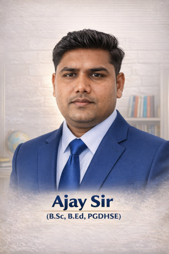 👨🏫 विद्यालय के निर्देशक Ajay Sir (B.Sc, B.Ed, PGDHSE) अनुभवी एवं समर्पित शिक्षाविद हैं, जो बच्चों को गुणवत्तापूर्ण शिक्षा प्रदान करने के लिए प्रतिबद्ध हैं।
