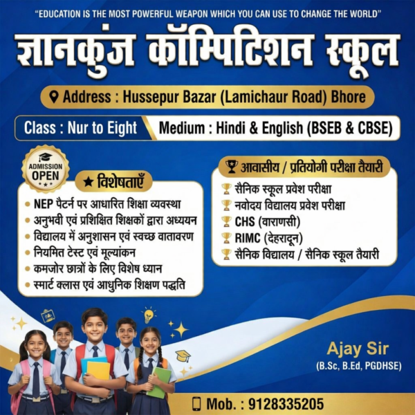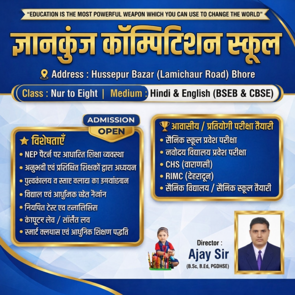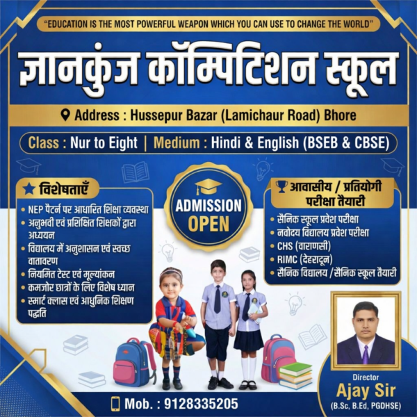 📚✨ एडमिशन ओपन – उज्ज्वल भविष्य की शुरुआत यहाँ से! ✨📚 🏫 ज्ञानकुंज कॉम्पिटिशन स्कूल एक उत्कृष्ट शिक्षण संस्थान है, जहाँ बच्चों के सर्वांगीण विकास पर विशेष ध्यान…