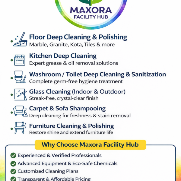 Maxora Facility Hub Professional Cleaning & Facility Solutions About Us Maxora Facility Hub is a trusted and professional cleaning company delivering comprehensive cleaning and hygiene solutions for residential,…