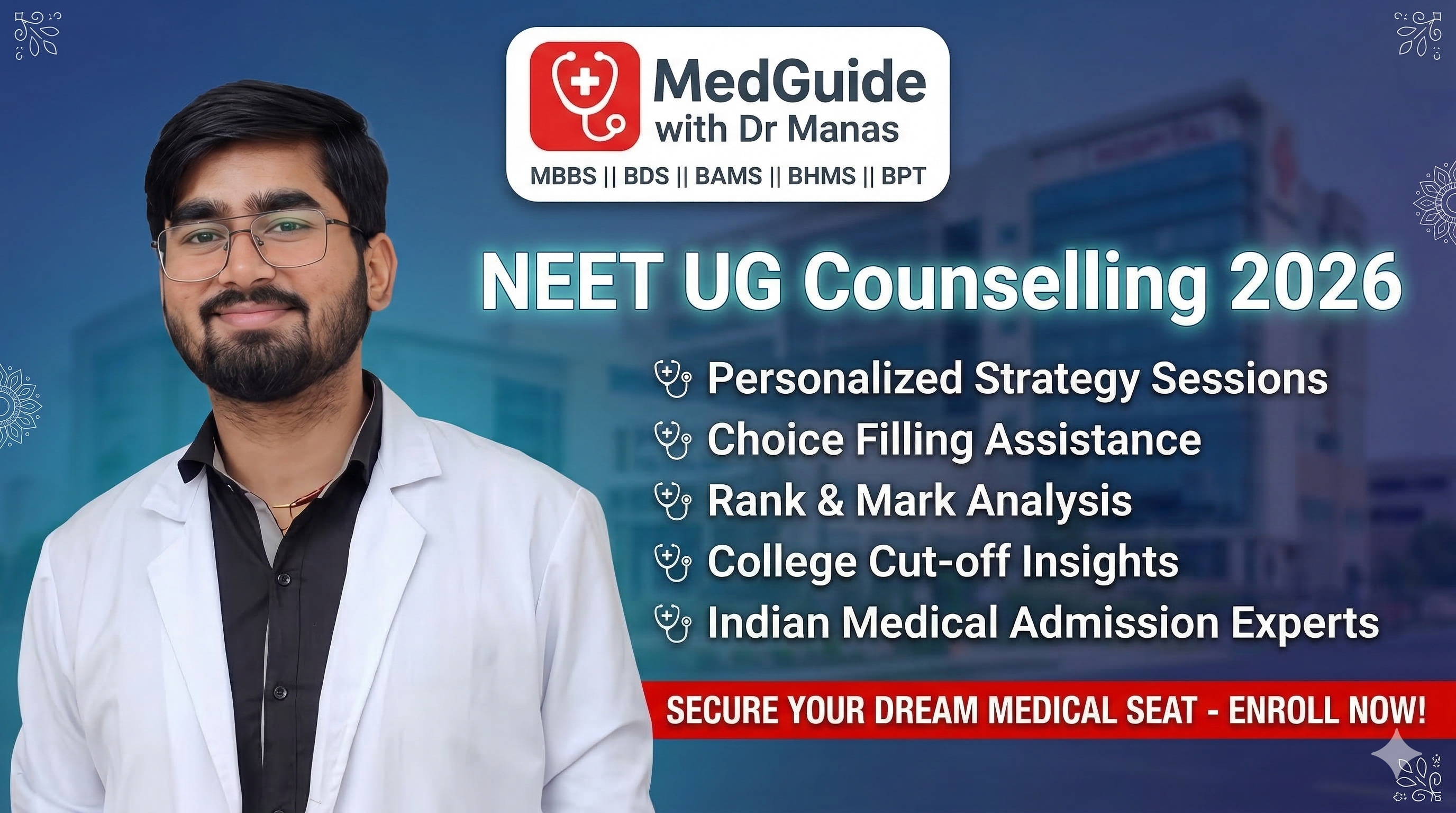 Secure your dream medical seat with expert guidance from MedGuide with Dr Manas. With over 5000+ successful counselling cases and 5+ years of experience, we specialize in guiding students through every step of the NEET counselling process.
